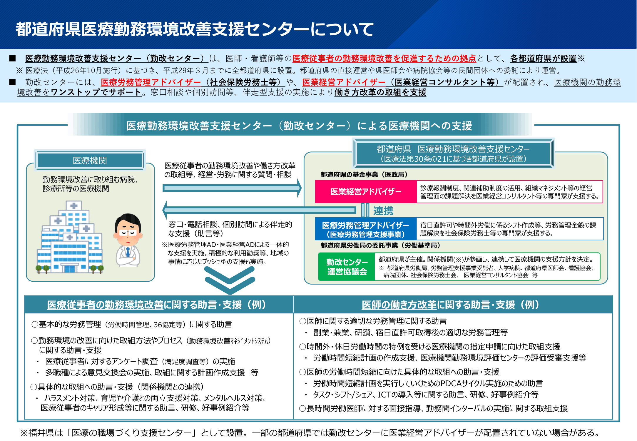 医療勤務環境改善支援センターのサポート